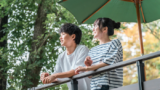 昼間の都内のオープンカフェで待ち合わせ☕🌸