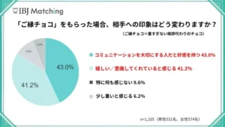 IBJ Matchingが婚活中の男女1,105人に実施した「バレンタインに関する意識調査」の結果が発表されました。