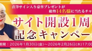 日頃の感謝を込めて開催されるこの「サイト開設1周年記念キャンペーン」では、キャンペーン期間中に対象の鑑定を購入した方の中から抽選で総勢14名に、「彌彌告先生サイン入り豪華グッズ」が当たります。この先の一年も、星と一緒にワクワクする毎日を過ごしてみてはいかがでしょうか。