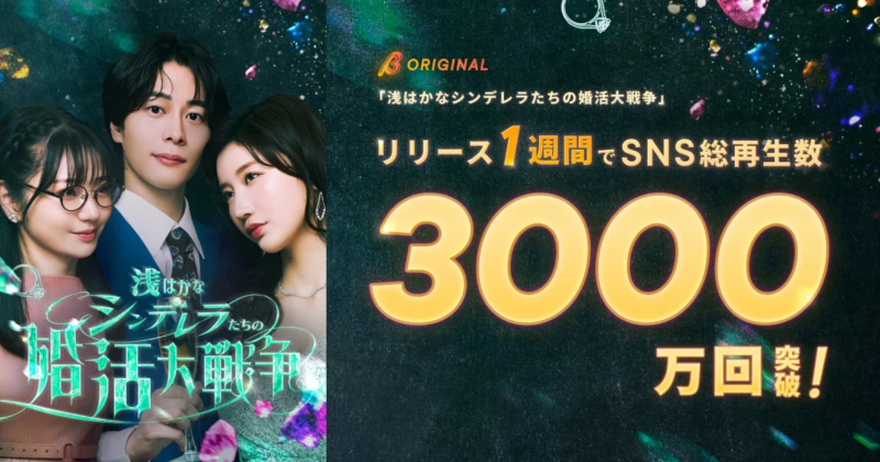 2026年1月21日(水)に配信が始まった、小倉ゆうかさん主演のBUMPオリジナルショートドラマ『浅はかなシンデレラたちの婚活大戦争』が、配信開始からたった1週間でSNS総再生数3,000万回を突破したんですって!さらに、ショートドラマアプリ「BUMP」内の週間ランキングと24時間ランキングでも見事1位を獲得し、まさに絶好調のスタートを切っています。