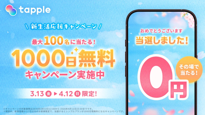 新生活、新しい出会いを応援!タップルが「1000日無料キャンペーン」であなたの恋を後押し!